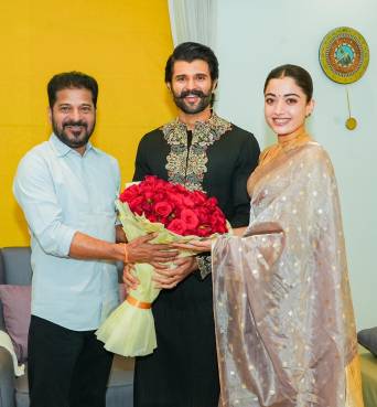 Hyderabad, March 6,2026: హైదరాబాద్‌లో సినీ నటుడు Vijay Deverakonda నివాసానికి తెలంగాణ ముఖ్యమంత్రి Revanth Reddy శుక్రవారం వెళ్లి నూతన దంపతులను అభినందించారు. ఇటీవల వివాహ బంధంతో ఒక్కటైన విజయ్ దేవరకొండ – Rashmika Mandanna జంటను కలిసిన ముఖ్యమంత్రి వారికి పుష్పగుచ్ఛం అందజేసి శుభాకాంక్షలు తెలిపారు.