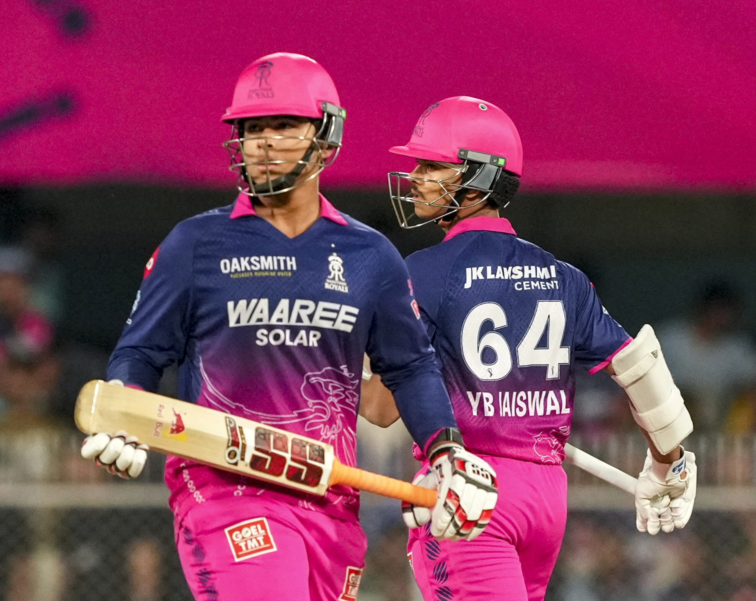 సోర్యవంశి ఔట్ అయిన తరువాత ధృవ్ జురెల్ (2) మరియు కెప్టెన్ రియాన్ పరాగ్ (10 బంతుల్లో 20) తక్కువ వ్యవధిలోనే ఔటయ్యారు. అయితే జైస్వాల్ చివరి వరకు క్రీజ్లో నిలిచి జట్టును భారీ స్కోర్కు తీసుకెళ్లాడు.